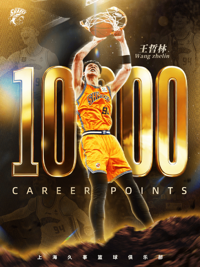 赛中上海男篮发文:王哲林总得分突破10000分&成为历史第六位万分先生。